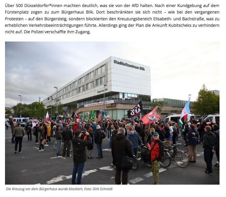 Und – gegen die Präsenz von allen „rechten Gruppierungen“, so genannten „Patrioten“, Rassisten, „Dügida“, sowie „Hooligans“.