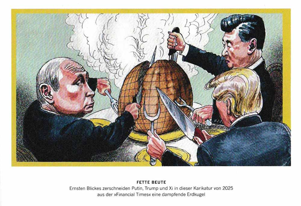 Fette Beute. Von Putin, Trump und Xi? Karikatur in Financial Times 2025 – aus: Die-ZEIT-Geschichte-2025