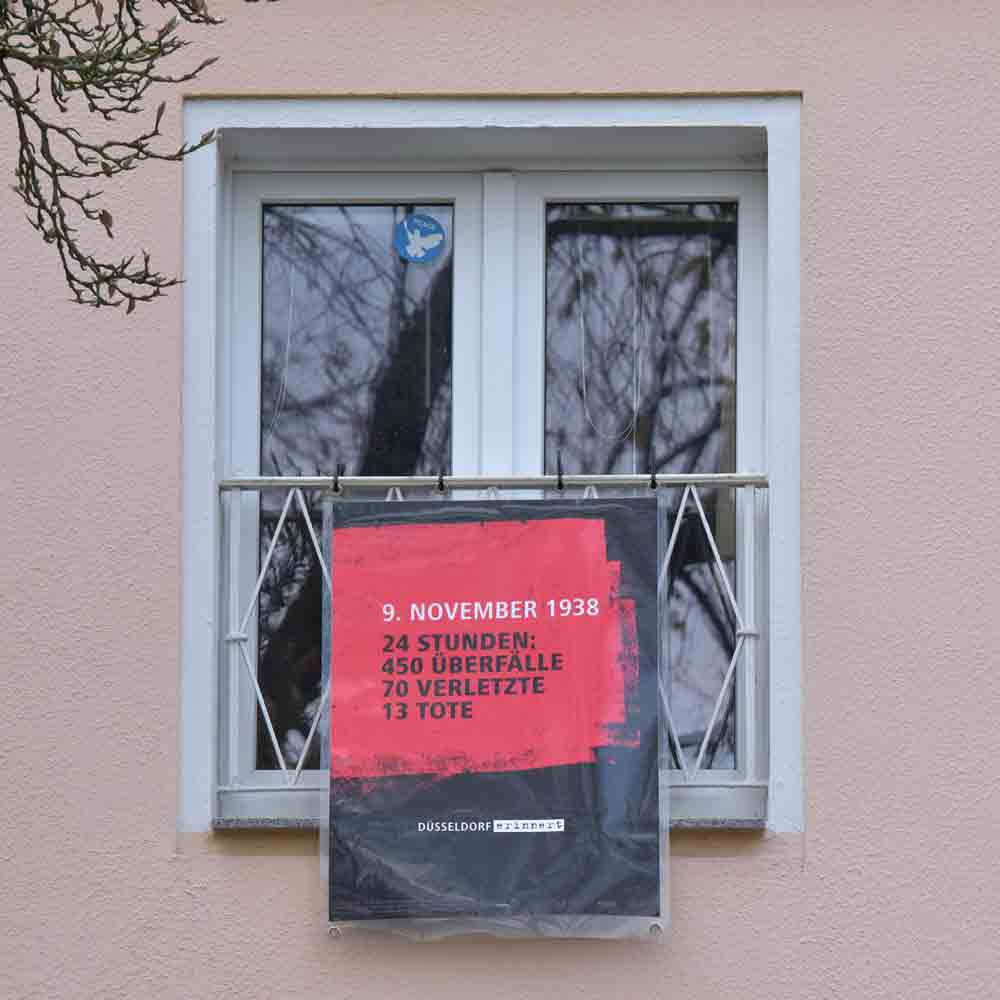 „Düsseldorf erinnert“ – Beteiligung an der Plakataktion – in Erinnerung an die Reichspogromnacht 1938. NRZ-Berichterstattung vom 12.11.2020.